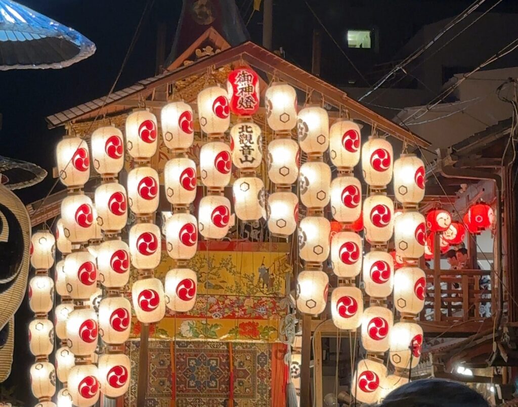 祇園祭あと祭りの山鉾と提灯。京都の夏を彩る伝統行事。