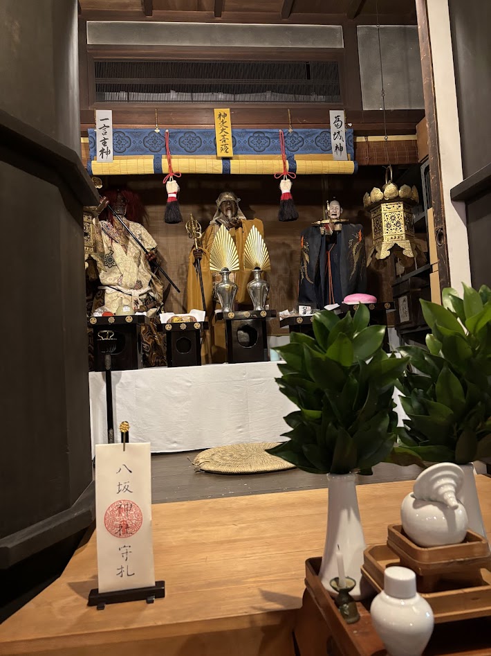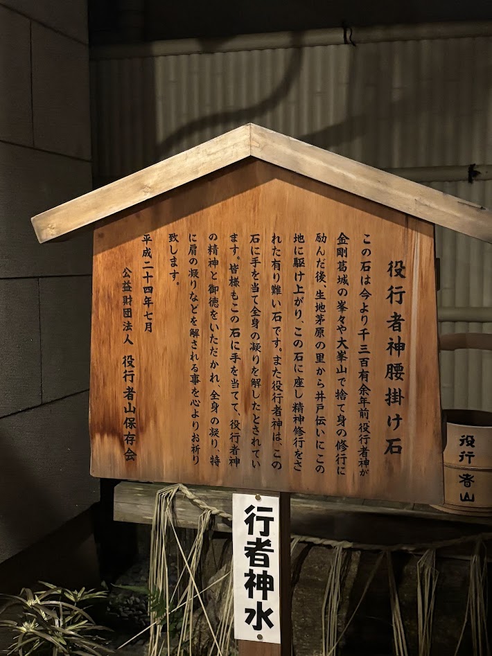 役行者神水は、修験道の浄めに使われた井戸水。古くから「身を清め、運を整える象徴」と信じられています。腰掛け石は、役行者が修行の途中に腰を下ろしたと伝わり、大地とつながる象徴です。これらは普段は非公開で、祇園祭あと祭りの期間だけ一般公開されます。